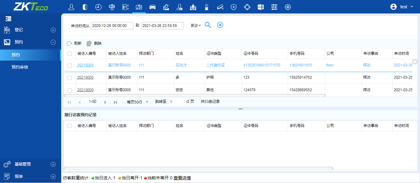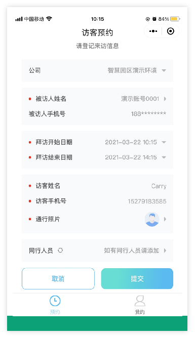 访客信息登记保存,方便下次预约信息直接带出。