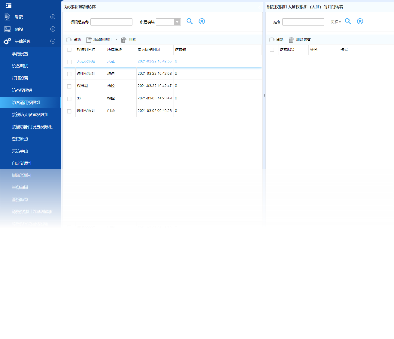 设置访客通用权限组后,只要访客通过预约或登记即拥有该通用权限组的权限,不用等到现场确认后才拥有该部分的权限,用于一些保密性较弱的公共区域场所。