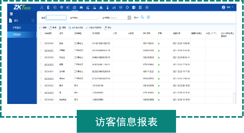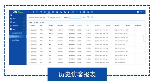 · 可提供访客机终端、门禁记录、车牌识别记录、系统等多种签离方式;