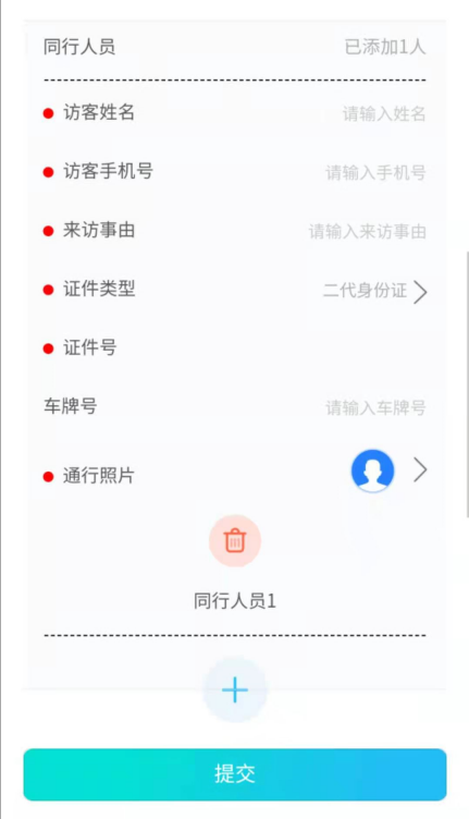 支持添加最多10位同行人员信息,可由主访客人员填写同行人员信息后提交。