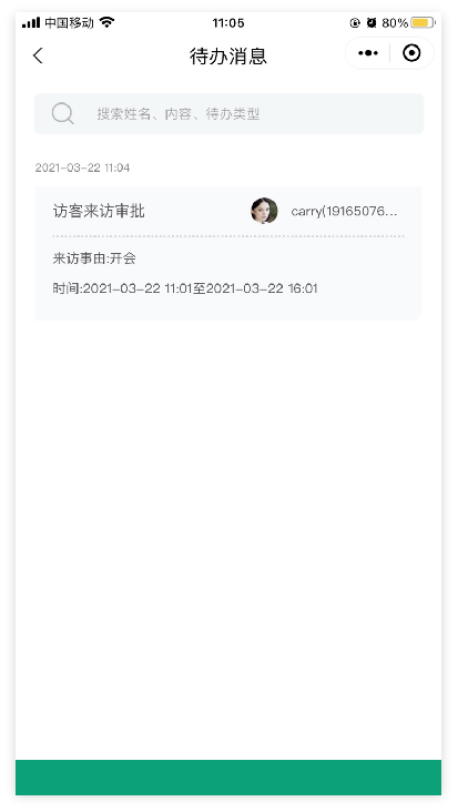 员工主动登记邀约访客,短信通知。